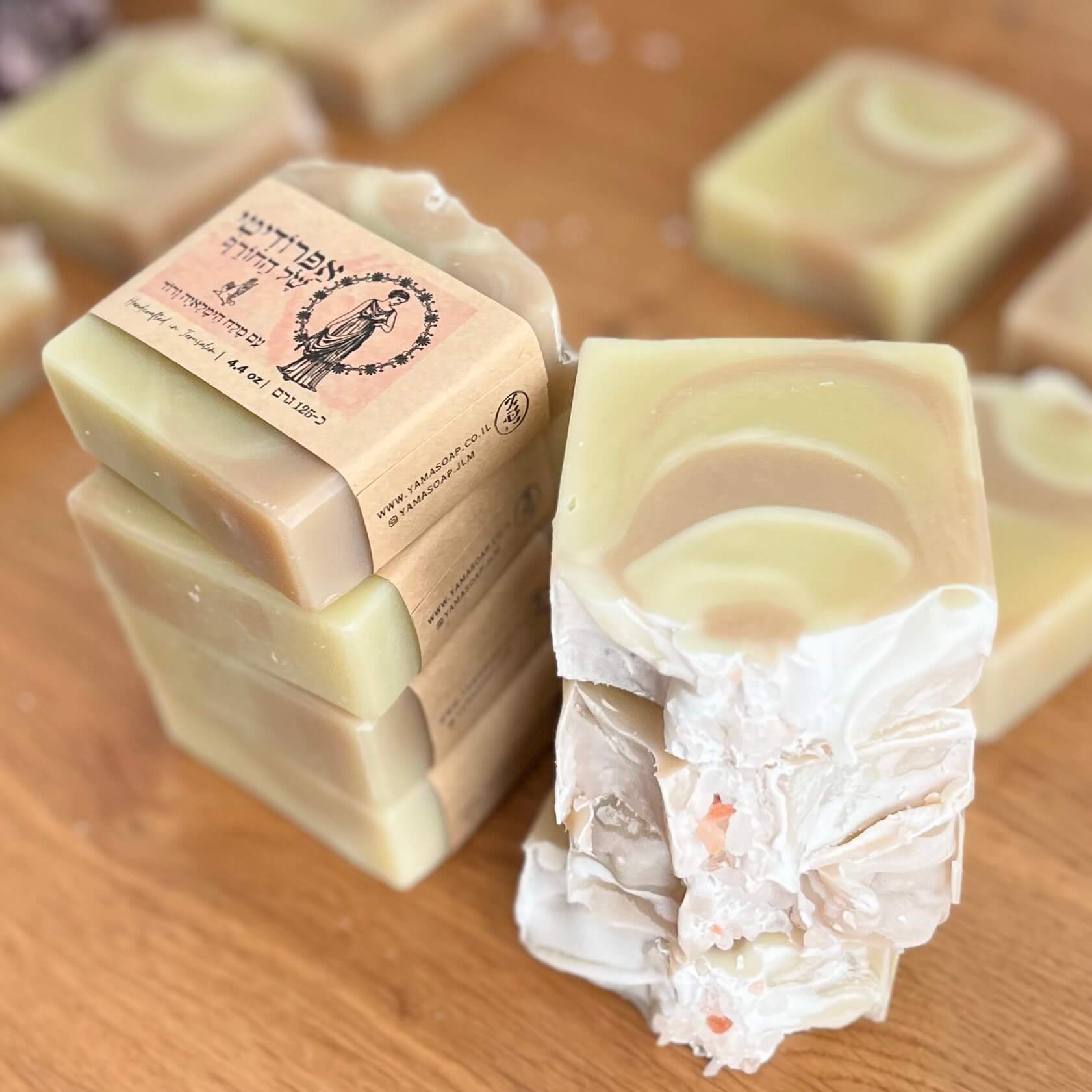 סבון אפרודיטי הוא סבון טבעי מוצק ויפהפה בגוון ורוד עדין, המועשר במלח הימלאיה ורוד אורגני. לא סתם בחרנו לקרוא לו על שם אלת האהבה והיופי מהמיתולוגיה היוונית, שבאגדות מסופר עליה שנולדה מקצף הגלים – הקצף של הסבון הזה רך ועדין והניחוח הרענן שלו נותן לכל מי שישתמש בו את ההרגשה הנהדרת שגם הוא מוקף אהבה ויופי.
