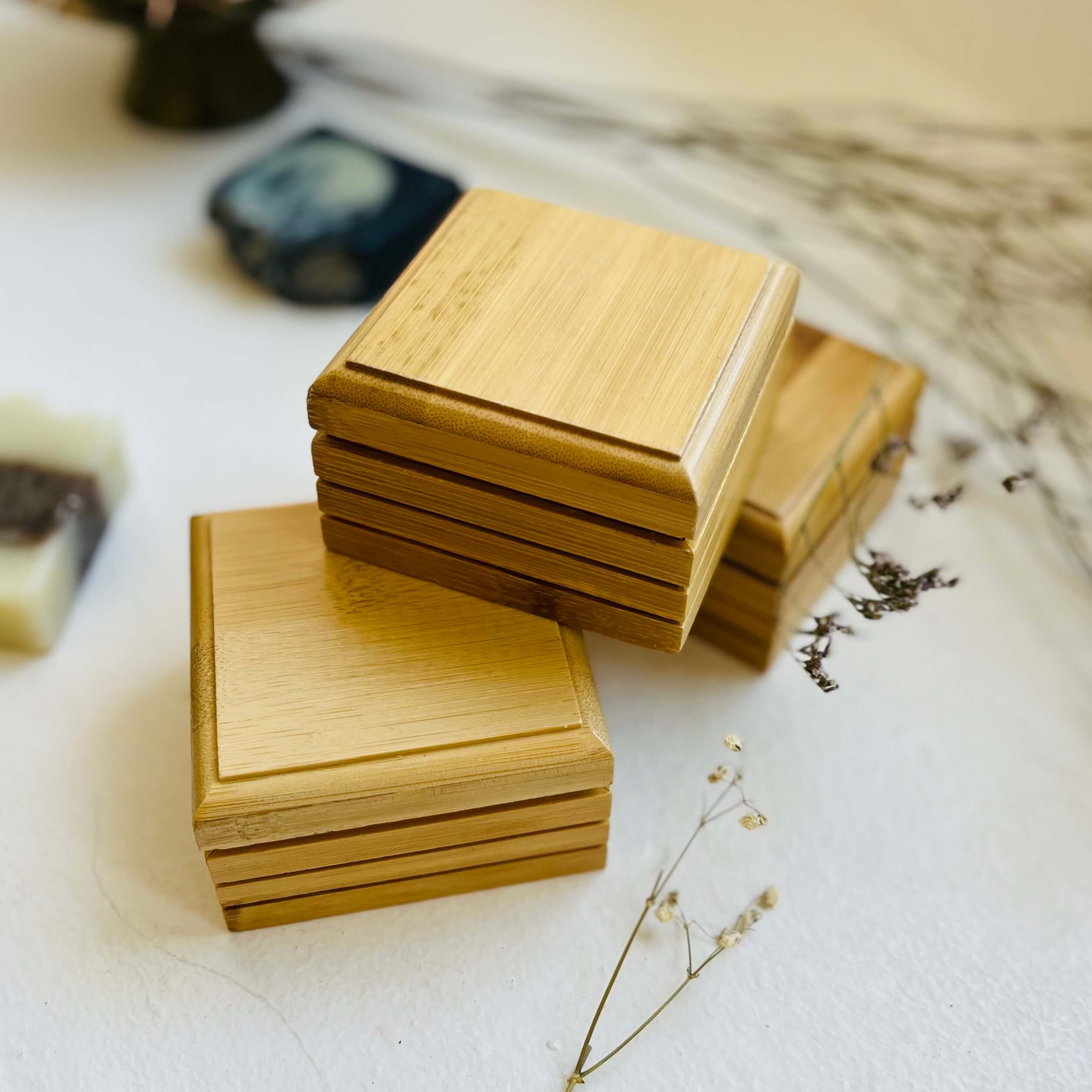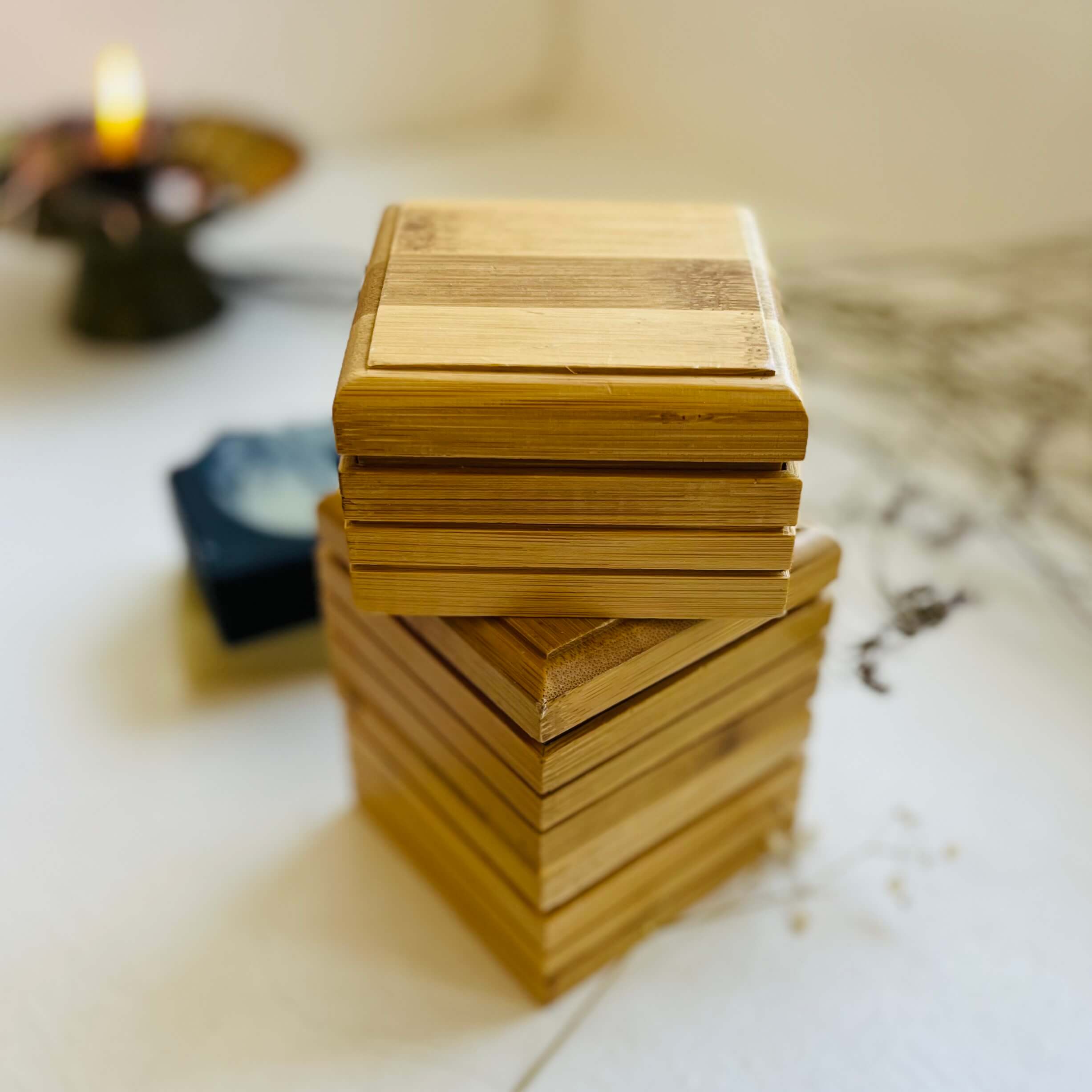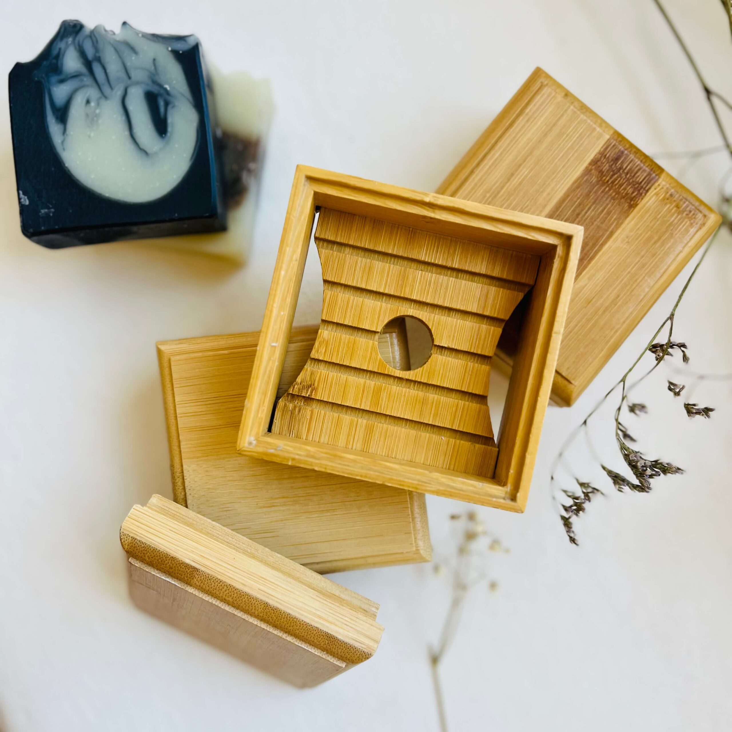 סבונייה וקופסת במבוק לנסיעות לסבון מוצק